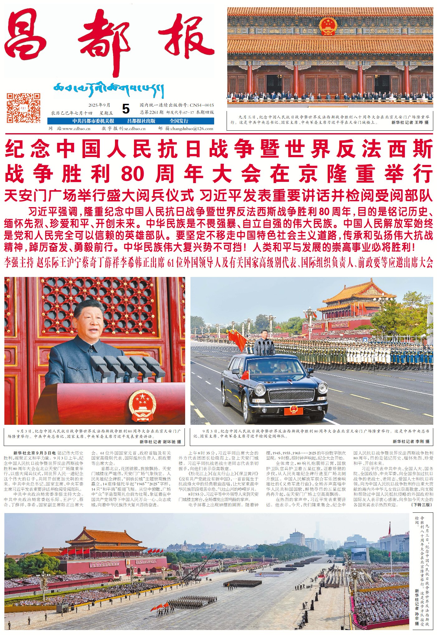 銘記歷史、緬懷先烈、珍愛和平、開創(chuàng)未來。今年9月3日是中國(guó)人民抗日戰(zhàn)爭(zhēng)暨世界反法西斯戰(zhàn)爭(zhēng)勝利80周年紀(jì)念日,是中國(guó)人民和全世界一切愛好和平的國(guó)家和人民的盛大節(jié)日。隆重舉行紀(jì)念活動(dòng),共同銘記正義必勝、和平必勝、人民必勝的偉大真理,正是要從偉大勝利中汲取奮勇前進(jìn)的力量,為以中國(guó)式現(xiàn)代化全面推進(jìn)強(qiáng)國(guó)建設(shè)、民族復(fù)興偉業(yè)而不懈奮斗,為人類和平與發(fā)展的崇高事業(yè)作出新的更大貢獻(xiàn)。